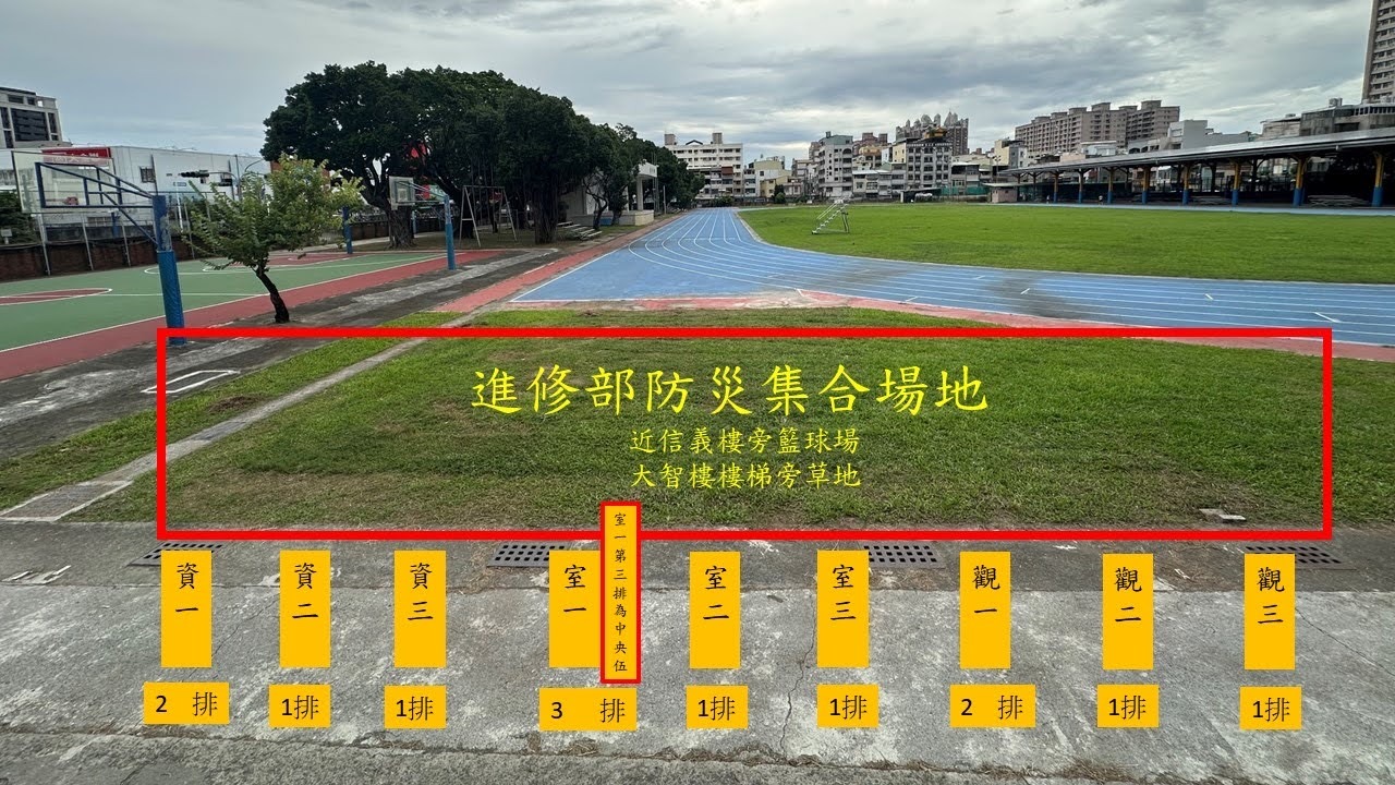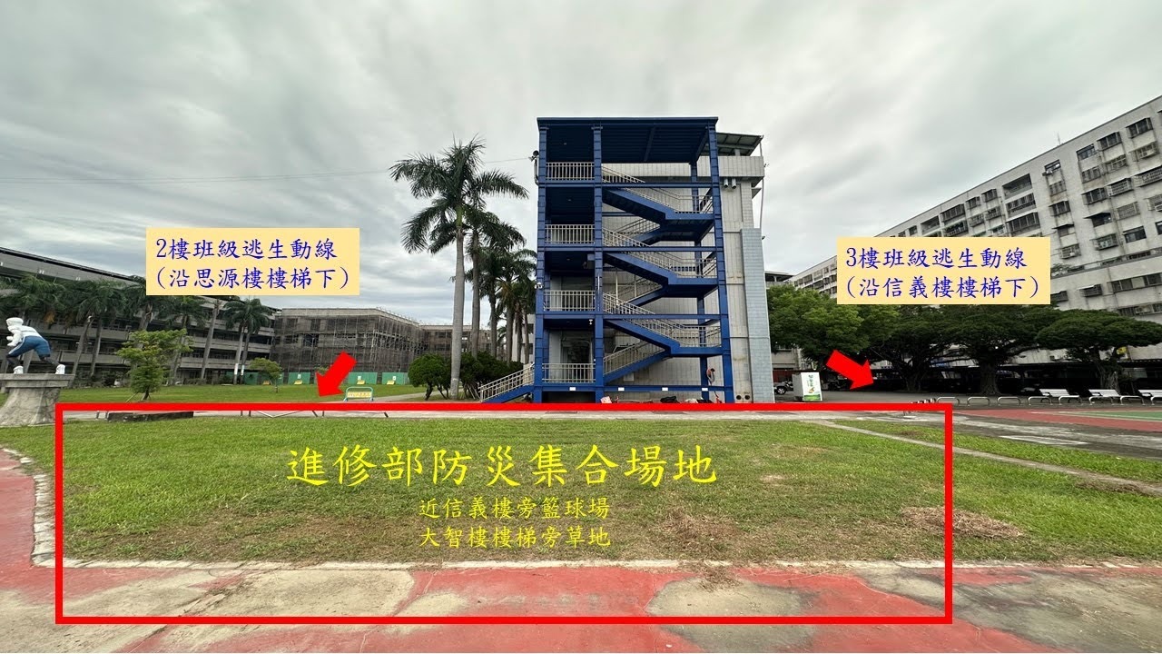 進修部將於 9月19日(星期五)晚間8點45分 實施 防震災演練,請全體同學配合相關演練流程,確實完成避難與集合動作。