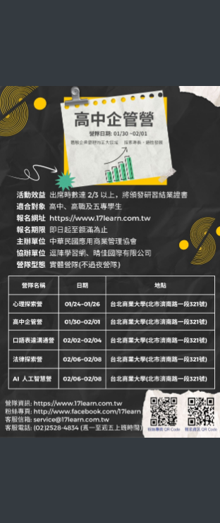 高中企管營-2026冬令營報名開始!!詳如附件。