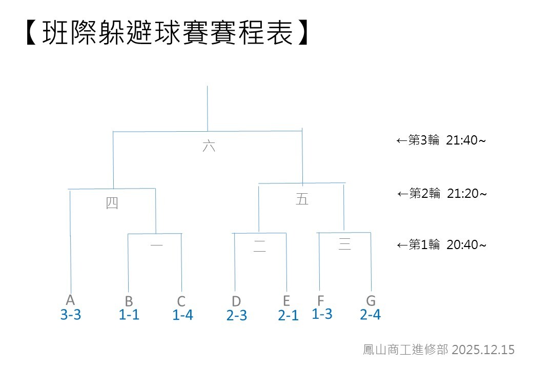 - 請各班師生於活動中心觀賽,自行暖身準備,任課教師隨班點名