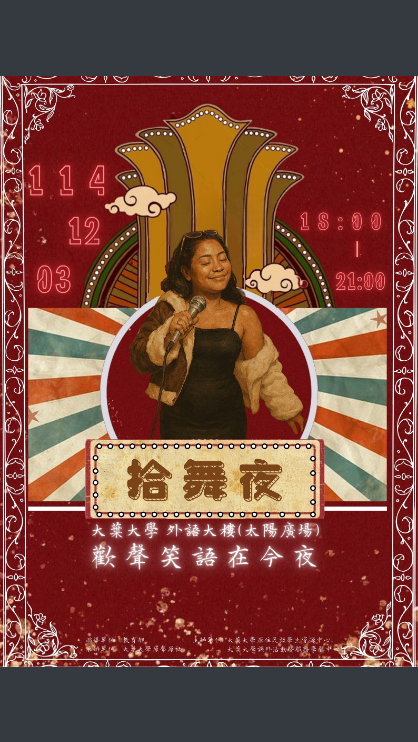 大葉大學原住民族學生資源中心辦理「拾舞夜-歡聲笑語在今夜」活動海報,詳如