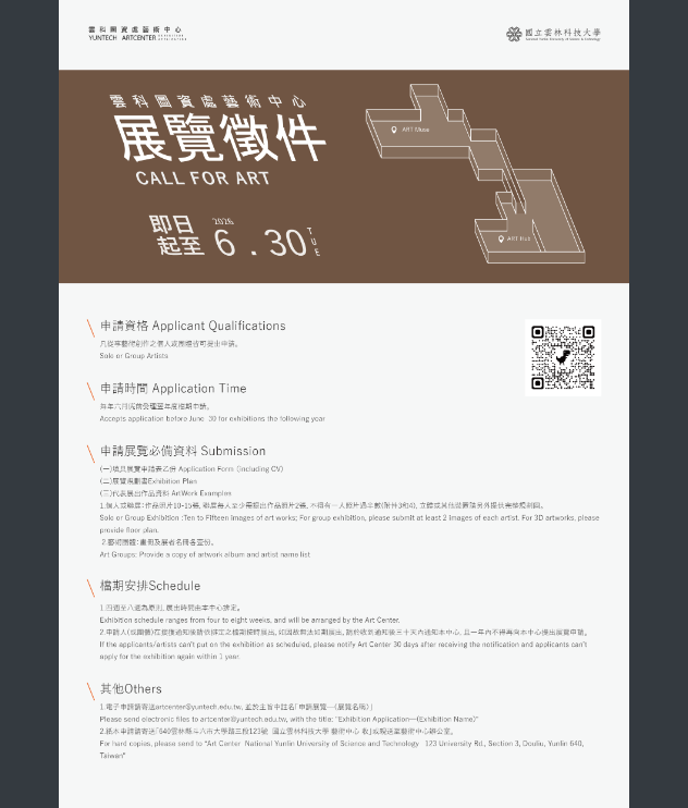 國立雲林科技大學辦理「圖資處藝術中心2026年展覽徵件」,詳如附件。