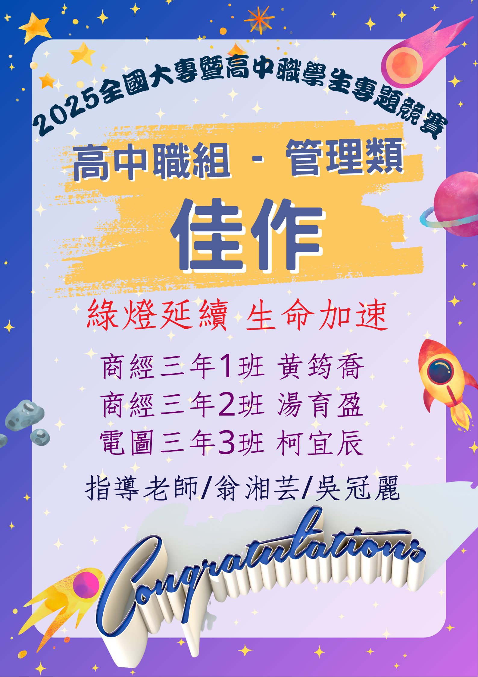 【賀 ! 】2025全國大專暨高中職學生專題競賽榮獲 佳作